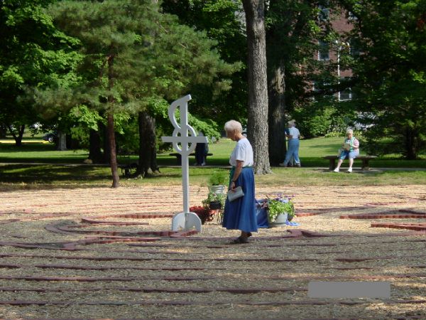 Chartres Labyrinth at Providence Center Saint Mary-of-the-Woods, IN A creative use of indigenous materials!. In July 2002 they built an outdoor 90 foot labyrinth in the grounds of the Motherhouse of the Sisters of Providence at Saint Mary-of-the-Woods. The material is woodchips from the branches that fall around the property. The paths are edged with curved bricks. They offer workshops for labyrinth walkers who want to know more about the practice, but the labyrinth is open to the public without going through a workshop. photos provided by Brother Barry G. Donaghue |